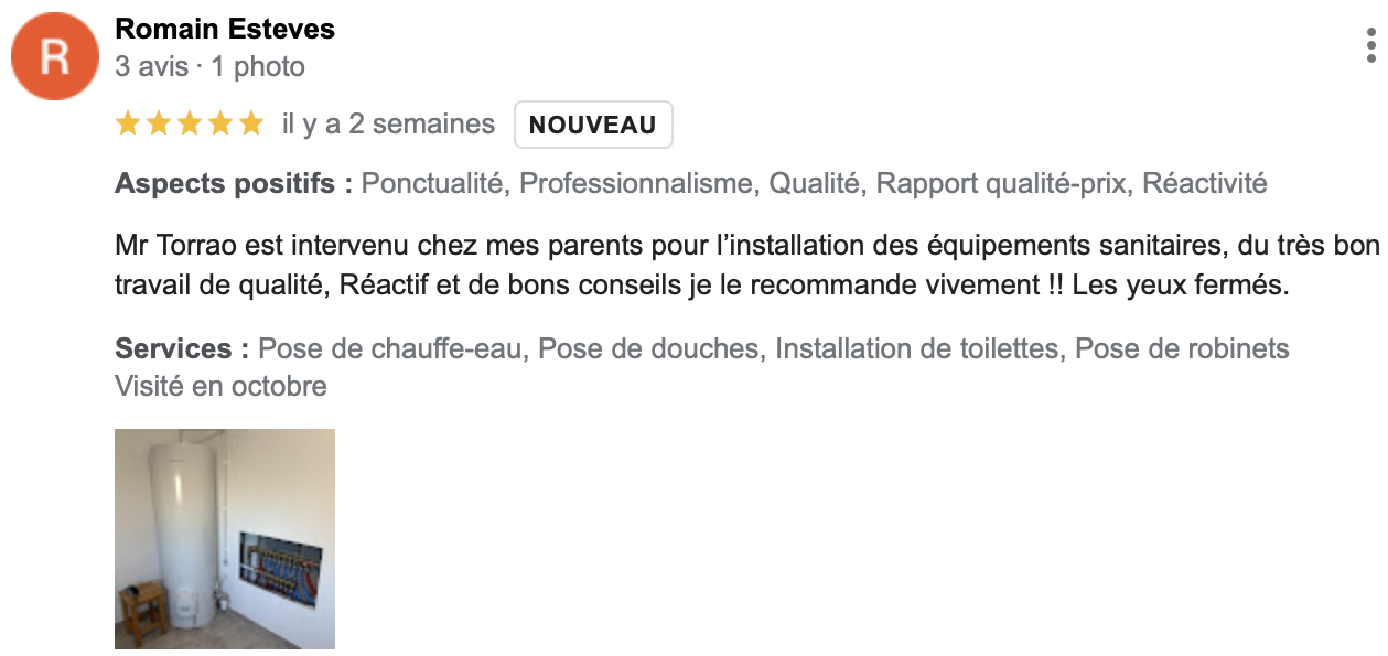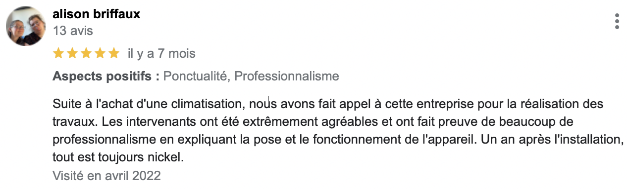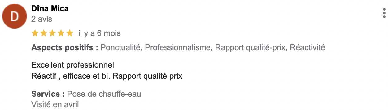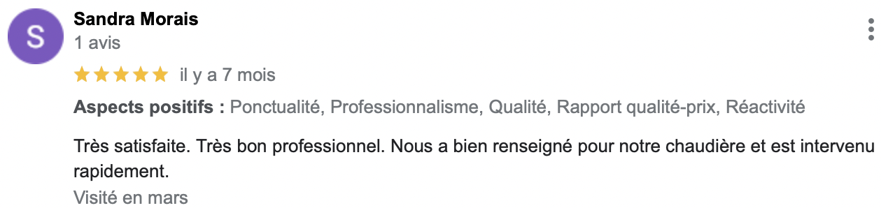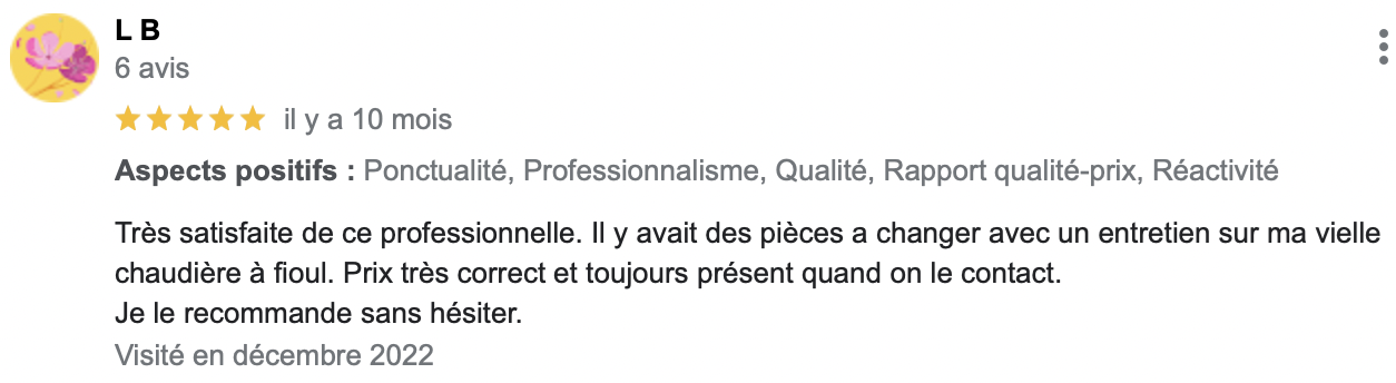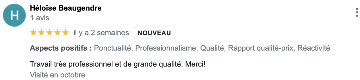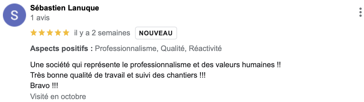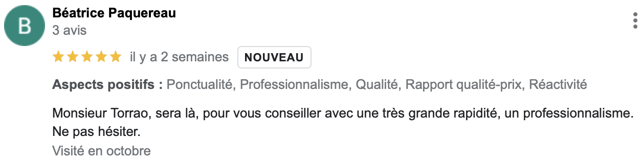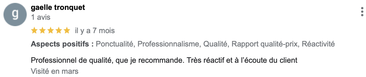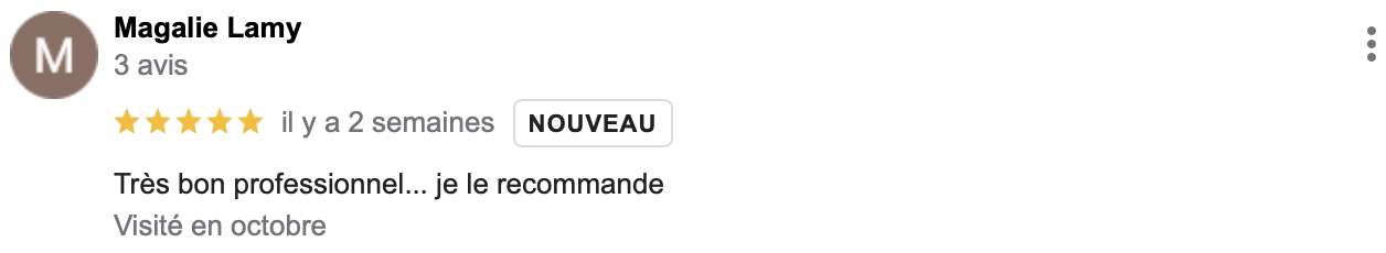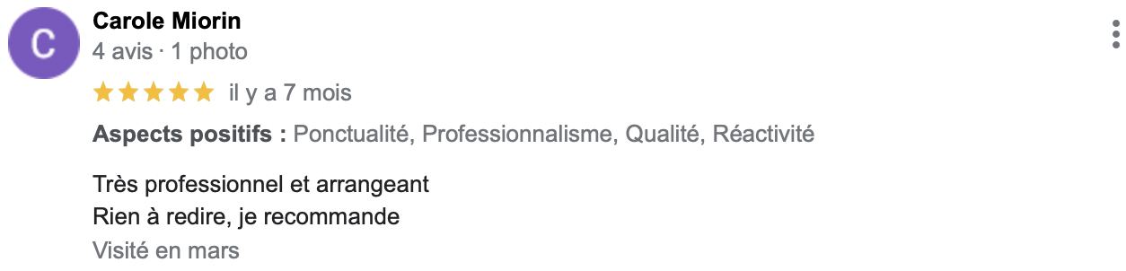 (Avis reccueillis sur Google Business Pro)