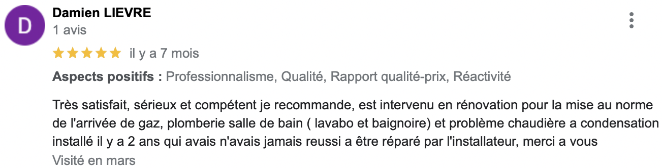 (Avis reccueillis sur Google Business Pro)